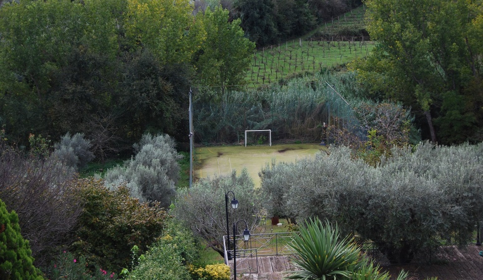 La villa è inserita su un terreno di Mq. 5000 circa con 40 alberi da frutta e 21 ulivi. Sia la pavimentazione esterna che interna è in cotto; completa la proprietà una piacevolissima piscina di m. 10x5 con terrazzatura circostante, un campo di calcetto illuminato ed un comodo parcheggio