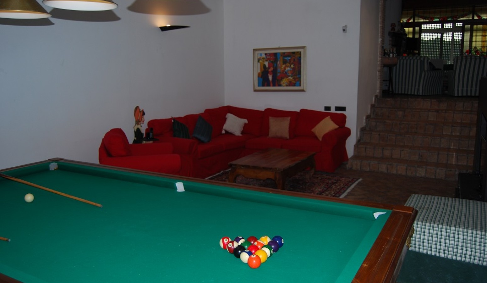- Piano Terra Portico: ampio salone con camino, sala da pranzo, cucina abitabile, sala biliardo con zona TV, lavanderia, bagno